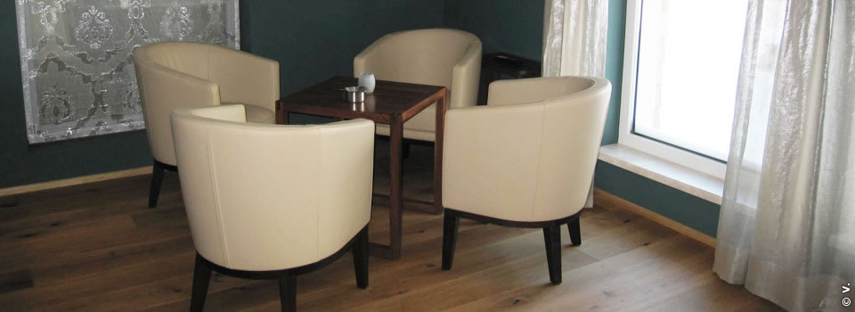 Lösung: Die Schaffung eines Multifunktionsraumes, geteilt in drei unterschiedliche Sitzbereiche für unterschiedliche Anforderungen. Durch die gemütliche Eckbank mit einer Sitzhöhe von 46cm lässt hier sogar eine Rauchertafel gestalten.