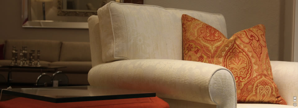 Neben Polstermöbeln, Tischen und Leuchten wählen Sie aus über 10.000 Stoffen für Vorhänge, Bespannungen und Überwürfen sowie aus einer Unzahl an Holzfarben, Maserungen und Strukturen.